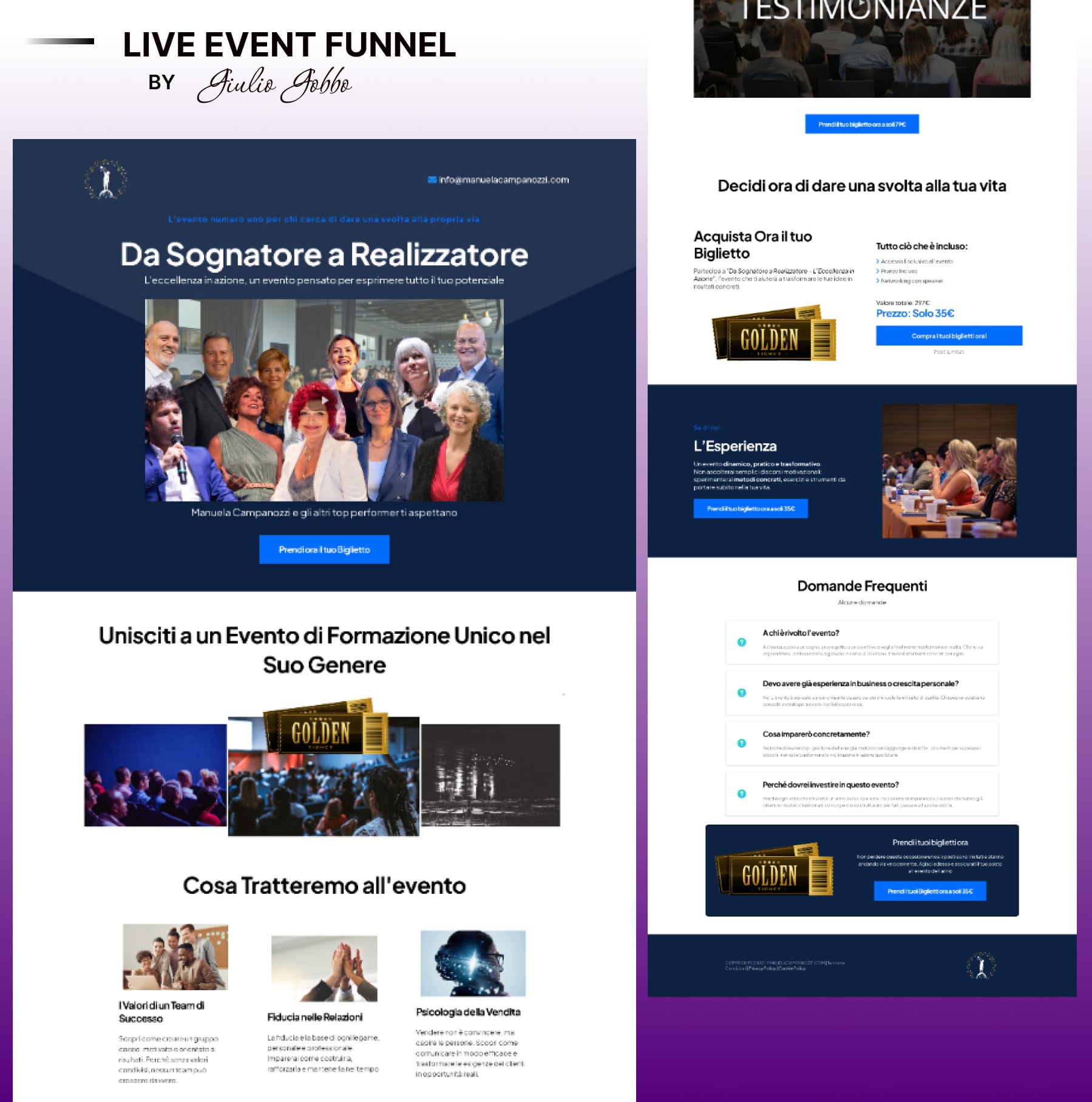 Funnel pensato per promuovere un evento dal vivo con due modalità di pagamento normale e VIP