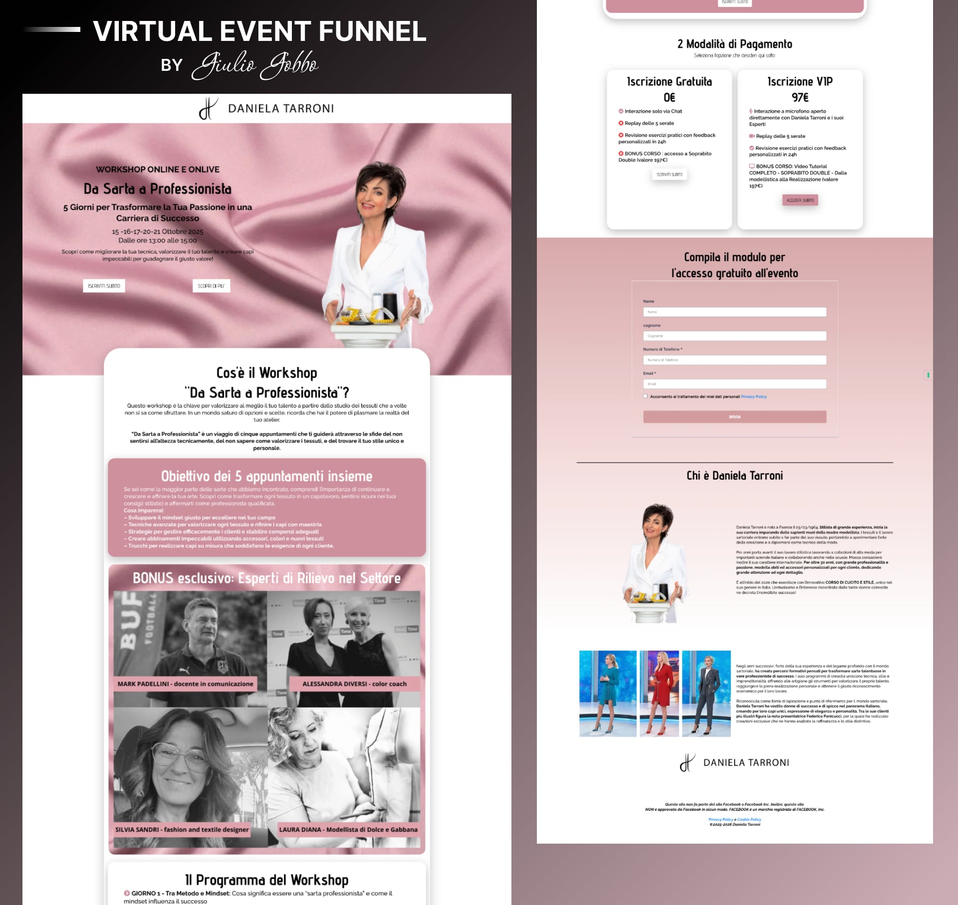Funnel pensato per promuovere un evento dal virtuale con due modalità di pagamento normale e VIP